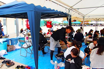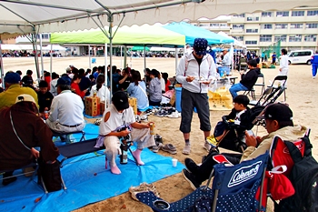 この消火演習の様子を横目に、各チームとも弁当配布。決して豪華なお弁当とは言えませんけど、こぅいぅ場で戴きます弁当は、何故か美味しいですネ(^.-)☆