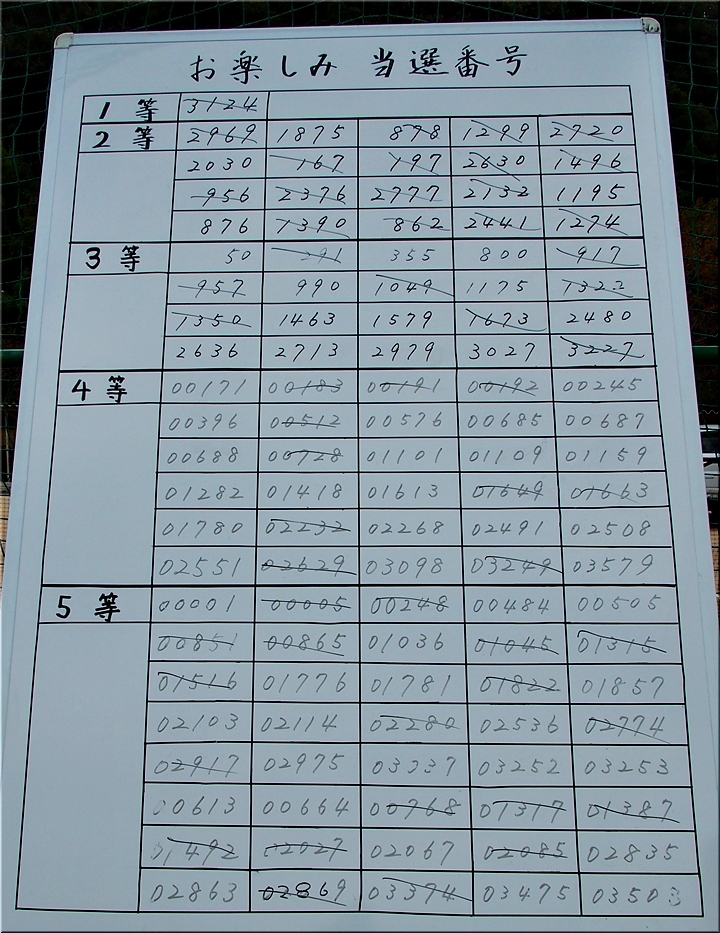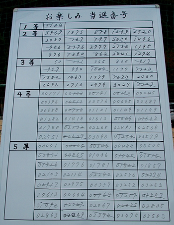 自身の番号は勿論ですけど、お預かりしています抽選券の番号は、特に念入りにチェックし洩れが生じませんよう慎重にチェックです。が、残念ながら6枚凡てハズレ券でありました(^-^;