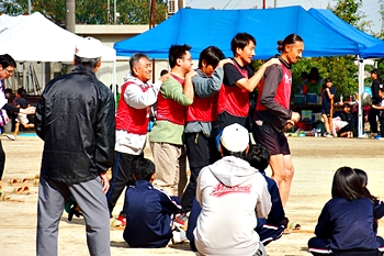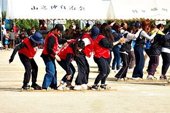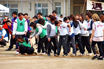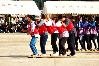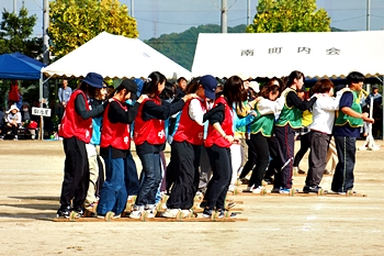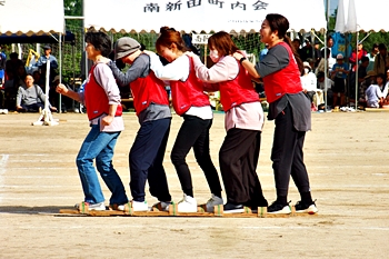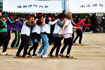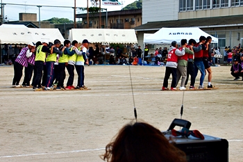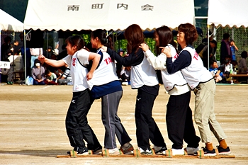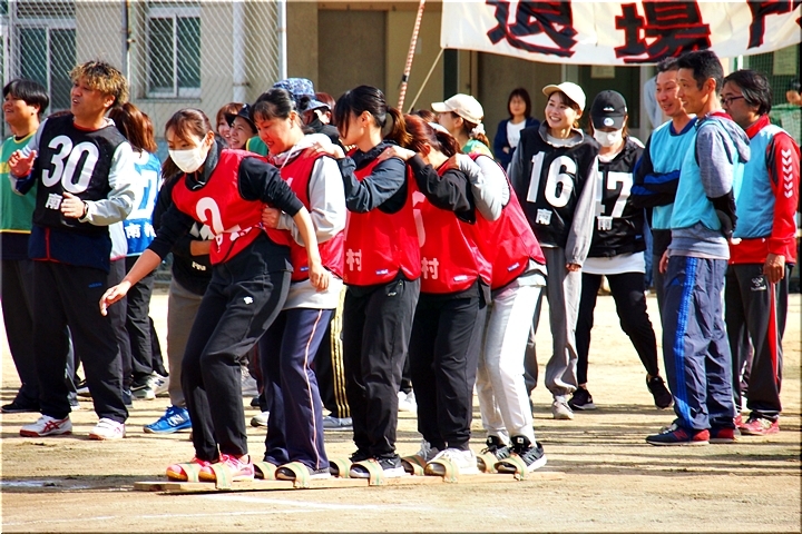 続いて、一般男女のむかでリレー=B毎回そぅなんですけど、むかでリレー≠ェまた観戦者には楽しい種目です。