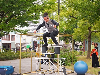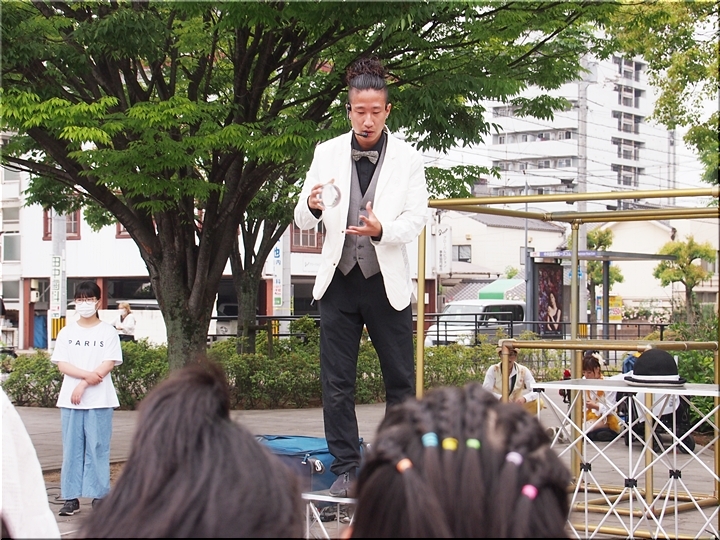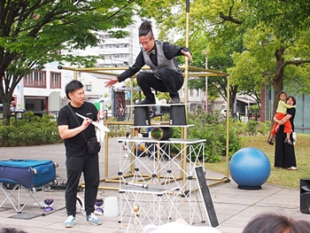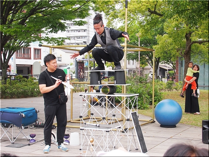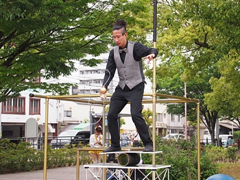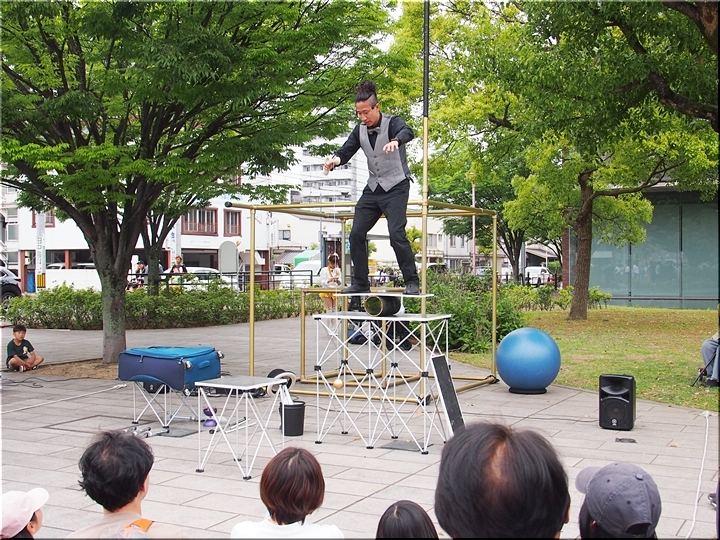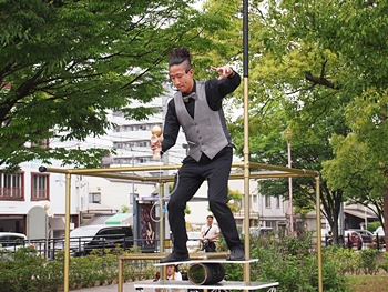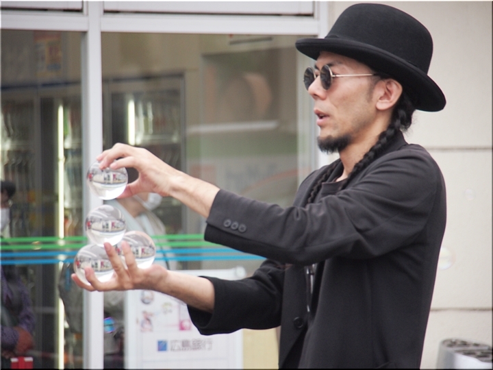 全国から大道芸人が集まり、街中でさまざまな技を繰り広げる「ふくやま大道芸」がおこなわれており、そこに足を運んだことがきっかけで大道芸に出会いました。