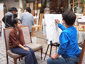中央公園に進んでいますと、似顔絵のパフォーマンスが…完成までには未だ暫く時間を要しそうですので残念。完成間近でしたら、立ち止まり暫し拝見ですけど、う〜ん、残念。