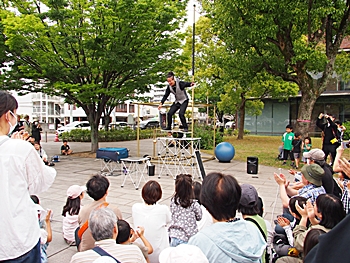 中央公園南スポットでは大道芸人S4《anのパフォーマンスに人の輪が…暫し拝見して行きます事に(^-^)//"