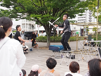 他にも、お椀を2個つなげたようなコマを、2本のハンドスティックに通した糸で回転させるディアボロ。また、子どもが多く参加するイベントでは、バルーンアートによるパフォーマンスを披露してきました。