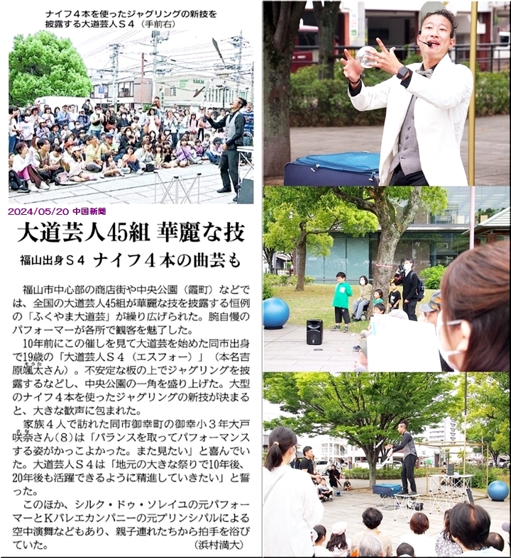 翌日の中国新聞sanの朝刊記事には、大道芸人S4《anの話題も掲載がありました(^.-)☆