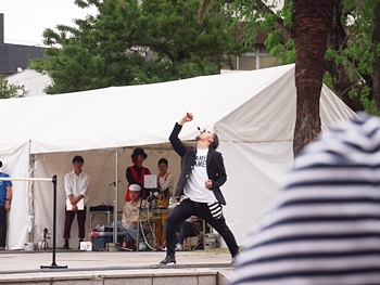 IGNIS DE ORNIS<空中演舞>≠ノ続いては、RYO<シングルロープ>∞ハタダ<スタイリッシュジャグリング>∞SAME SAME≠ェ登場です(^.-)☆