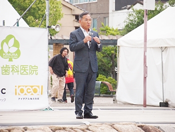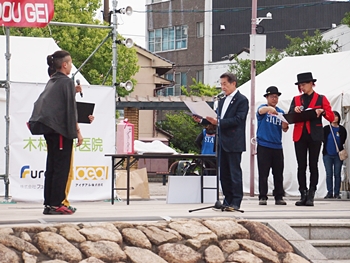 ふくやま大道芸2024 グランプリ大会決勝¥o場者のパフォーマンスが終わりましたところで、枝広福山市長sanのご挨拶です。