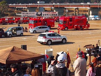 毎回、大概、そぅなんですけど、オープンカーの状態で退場していきます光景は、公開訓練ならではの楽しさが生じます(^.-)☆