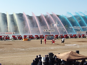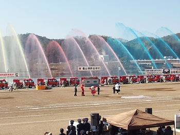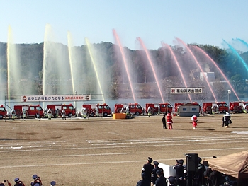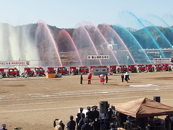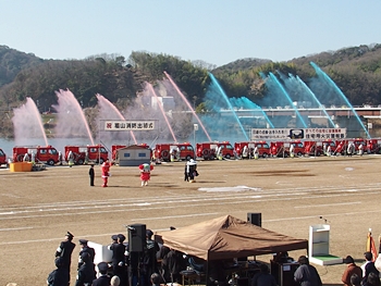 一斉放水にヘリコプターが加わりますと絵になりましたのでしょうけど、チビッコの皆様には残念でしたネ(^-^)/