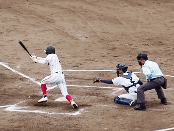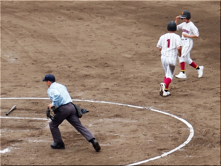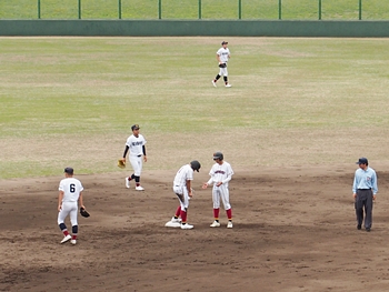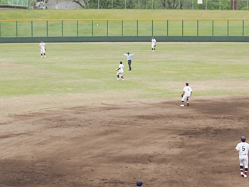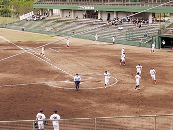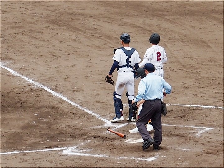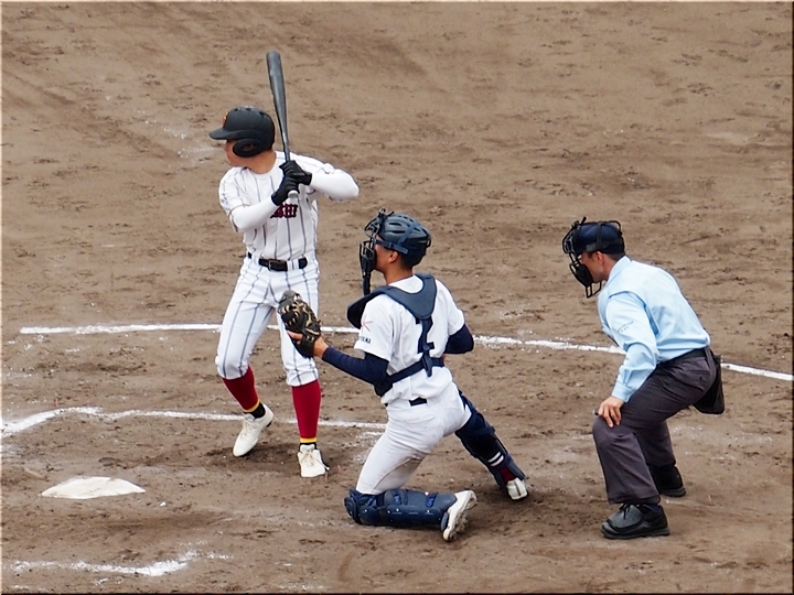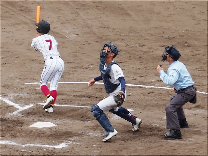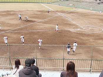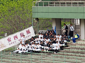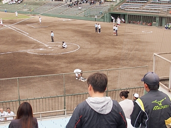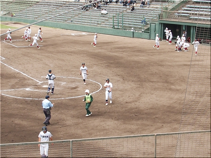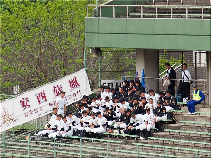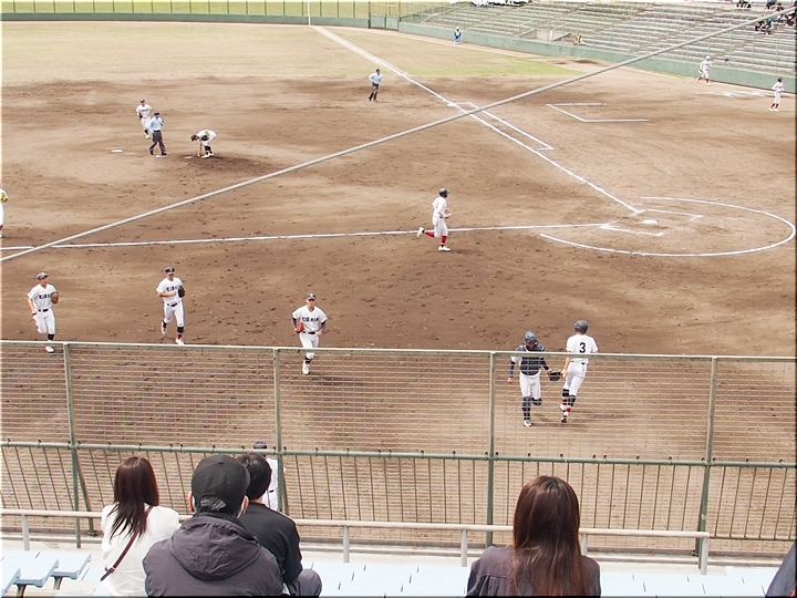 それにしましても、ネット裏の観客席を見廻しますと、地元校の試合だと言いますのに、相変わらず寂しい観客数。まぁ、春季大会ですから、こんなもんかも分かりませんネ(^-^)//"