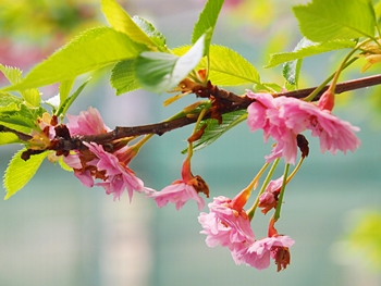 秋に、そして春に、二度満開を迎えますジュウガツザクラ…サクラの開花を目前に二度目の満開を迎え、主役の座をサクラに譲りますジュウガツザクラ…未だ頑張って咲いておりましたネ。