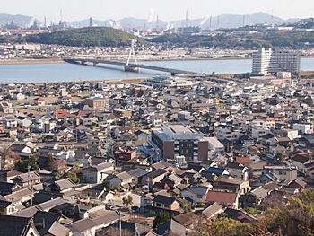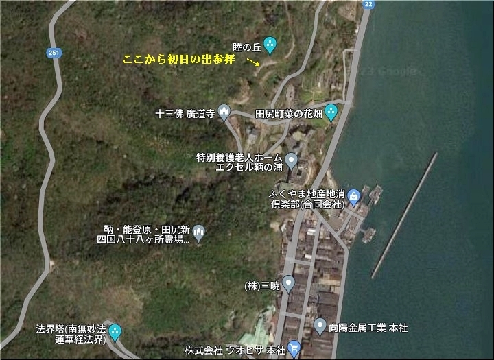 鞆鉄鋼団地手前のエクセル下から、山側の十三佛≠ノ上り、広場に駐車。ここからは歩いて睦の丘≠ヨ。