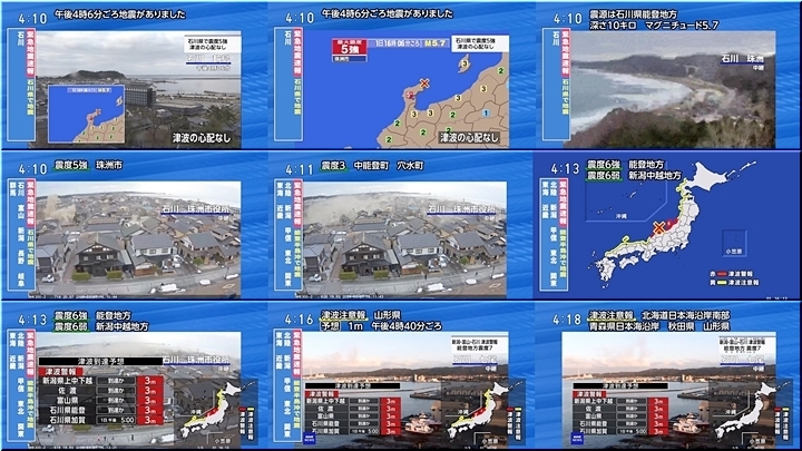 念のため、テレビを付けてみますと、もぅビックリ。P.M.4:06に石川県輪島で「震度5」の地震が発生です。もぅ、絵日記作成どころではありません。