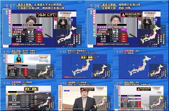 で、テレビのスイッチを入れますと、石川県能登地方の津波警報を伝えておりました。