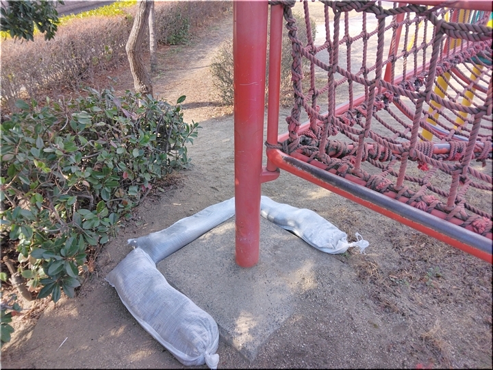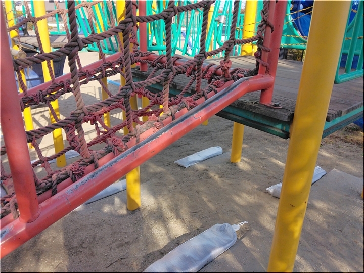 遊具設置の基礎部分の、コンクリート露出部分まで措置しなければならないとは、大変ではありますネ。