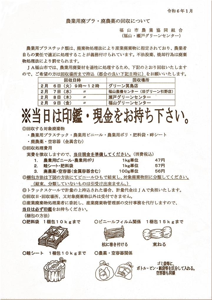 ふん、ふん、〝農業用廃プラ・廃農薬の回収〟のご案内ですネ(^.-)☆