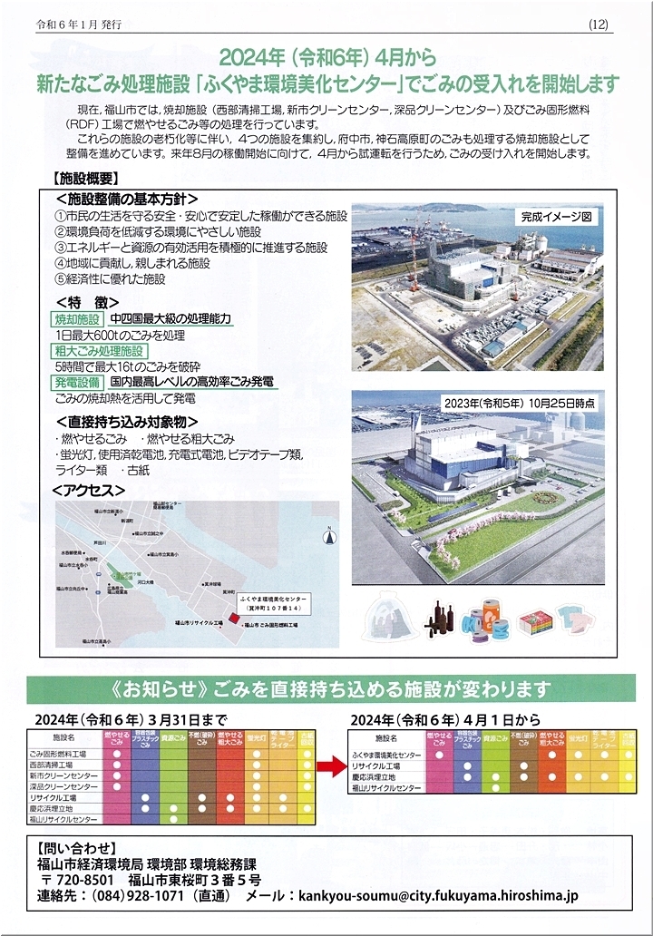 昨年の、年の瀬迫りました12月下旬に、〝クリーンセンター〟へ大型ゴミと言うか重量のあります廃棄ゴミを持ち込みましたけど、その際に「来年4月からは、大型ゴミの持ち込みは〝ふくやま環境美化センター〟となります…」との事でありました。