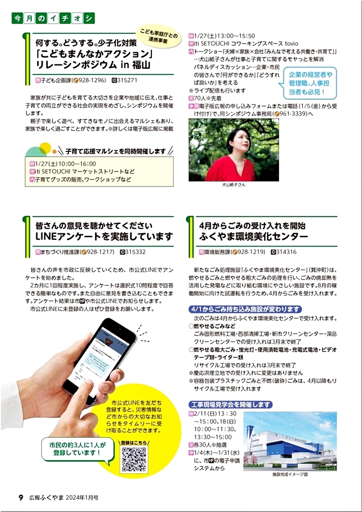 で、急いで、「広報 ふくやま」をめくり確認してみますと、うん、うん、記載がありましたネ。9ページ目に、それも小さく(^-^)