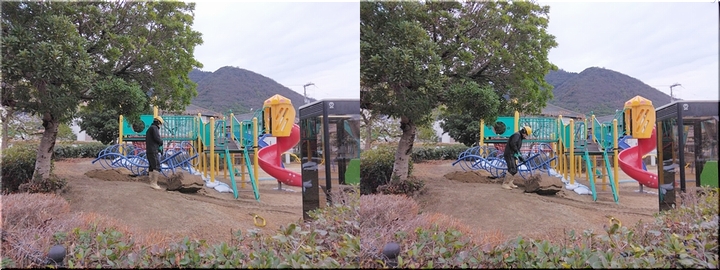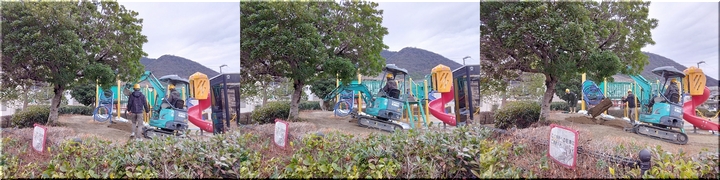 ふ~ん、ヤッと危険遊具であります〝輪くぐり遊具〟部分の撤去が始まりますのかも…