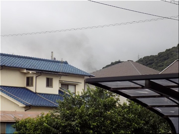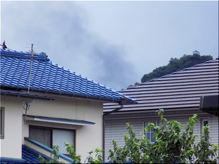 カメラを持ち出し、西南方向に眼を向けますと、真っ黒い煙は随分薄らいでおりました。無事、鎮火方向に向かっていますようで一安心。最初に、真っ黒い煙を眼にしました時には、結構、不気味でありました(^-^)//"