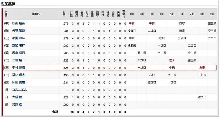 昨夜は、久々に先発出場の中村奨成選手の打席に注目しましたけど、一ゴロ・中飛・左安と3打数1安打。2打席目の中飛は当たりは良かったのですけど…