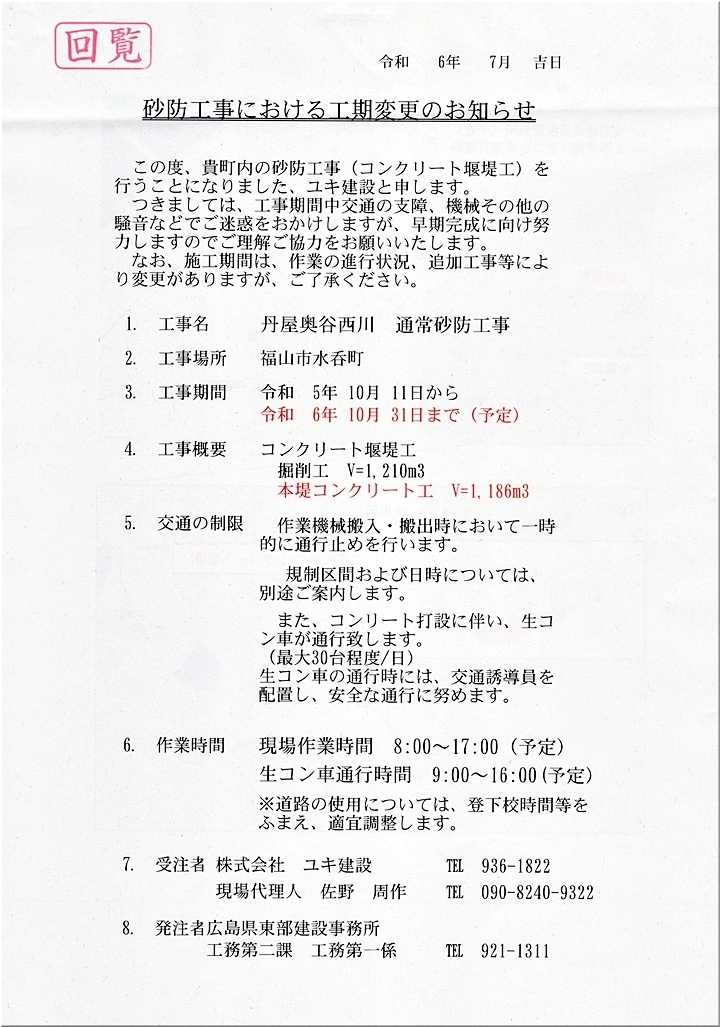 工事現場は、六方学園の上辺りの谷ですけど、工期は令和5年10月11日〜令和6年10月31日≠フようであります。