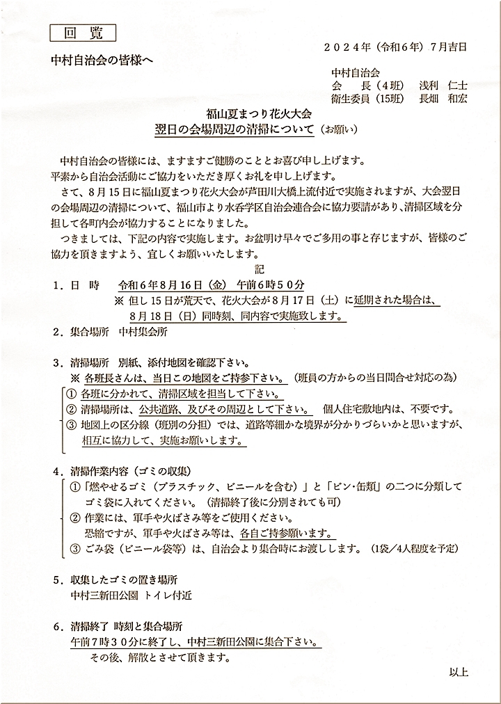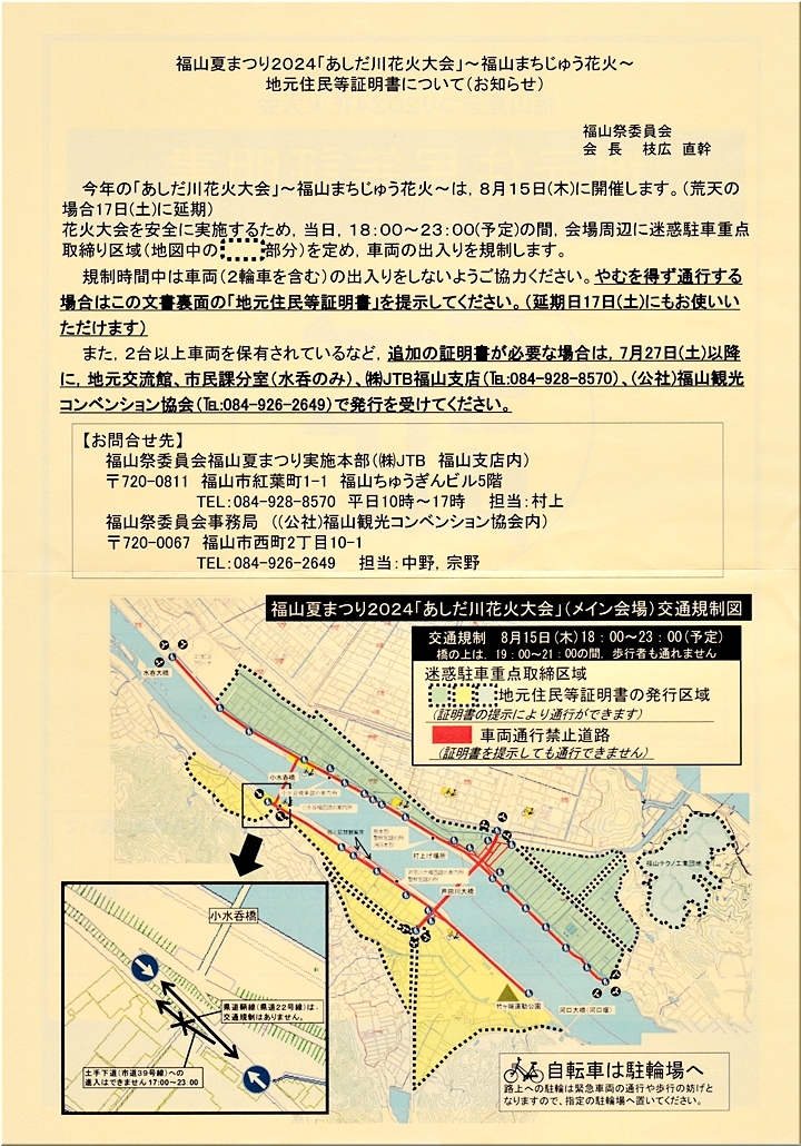 昨日でしたか…自治会の回覧であしだ川花火大会≠フ交通規制のご案内が…