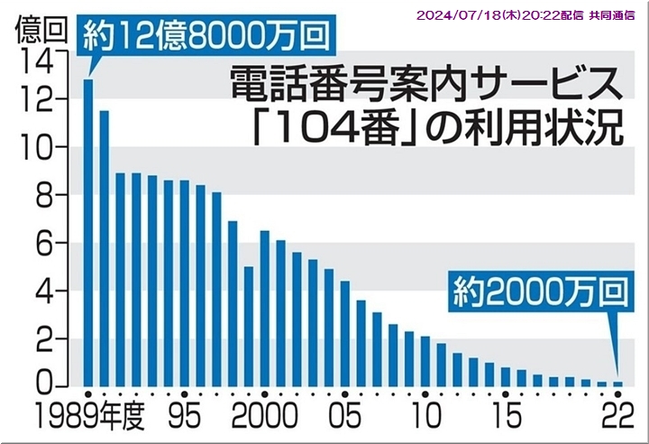 ◆電話番号案内104終了へ NTT東西、利用者激減で