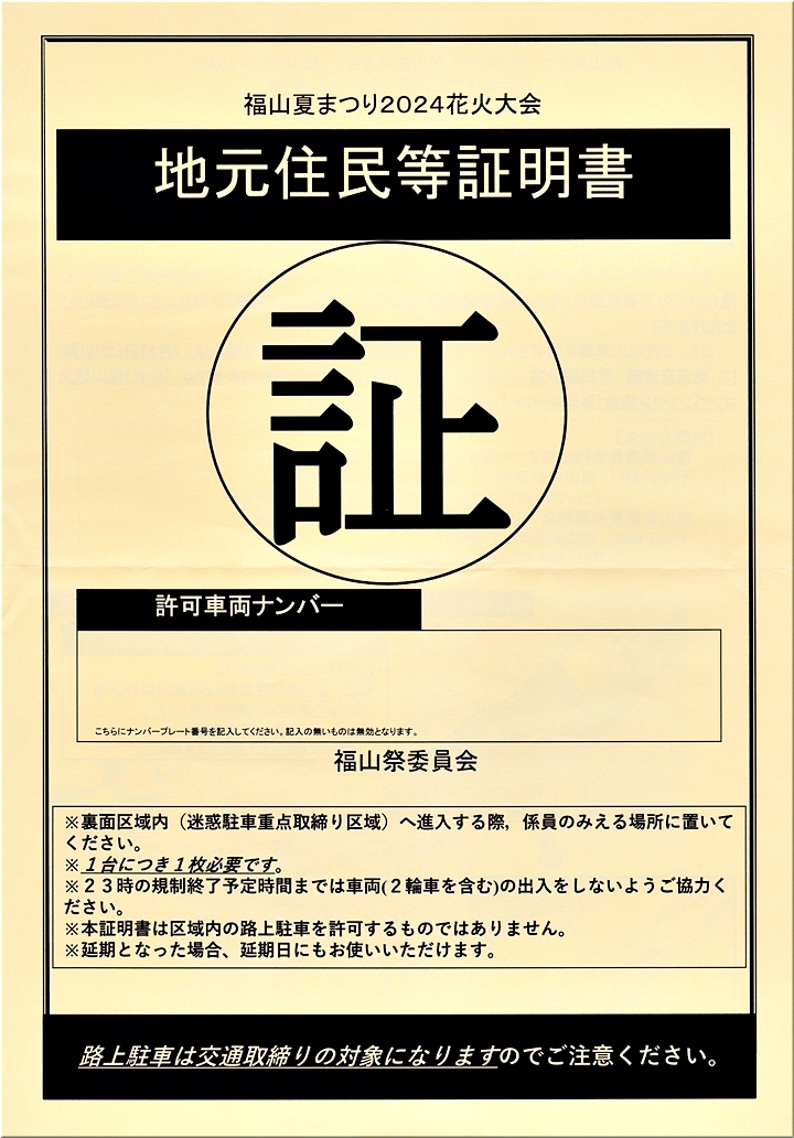 昨日、郵便受けに、花火大会当日の車両走行許可証≠ェ投函されておりました(^.-)☆