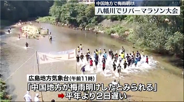 ◆中国地方で梅雨明け 広島市内の八幡川ではリバーマラソン