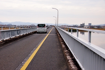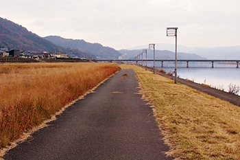 小水呑橋を渡り、左岸の河川敷に下りますと、今度は川下の芦田川大橋・河口堰方向に進みます。