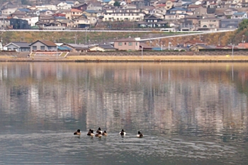 川面に眼を向けますと、カモsan一家が…親鳥の後に続きます子ガモの皆さんが可愛いぃですネ。とは言いましても、もぅ親並みの体長ですけど(^.-)☆