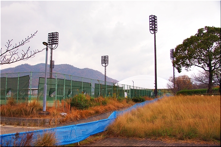 福山市民球場の横まで来ましたので、運動公園ウォーキングロードへと進み、テニスコート増設工事の進捗状況でも確認してみましょうか(^-^)