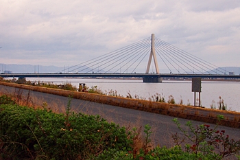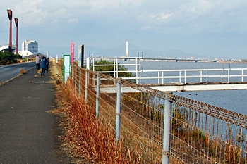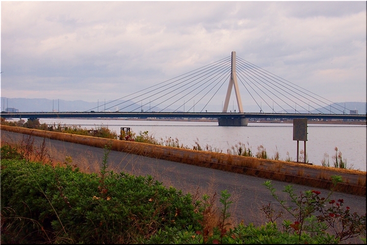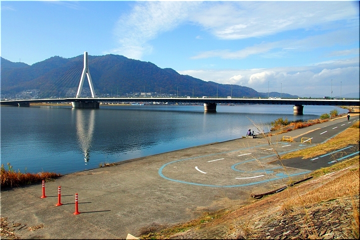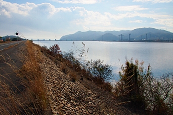河口堰を渡りますと、今度は、右岸の土手を芦田川大橋方向へ。