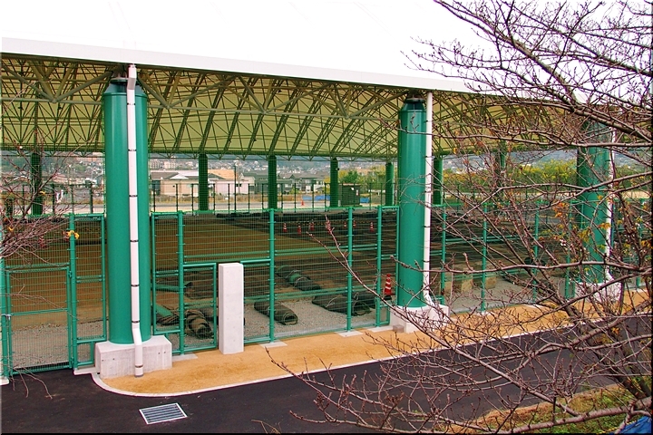 既存コートに隣接し、老朽化などで20年に廃止したプール跡地に人工芝の8面を整備する。日差しの影響を受ける既存の東西向きの4面は屋根付きに改修する。