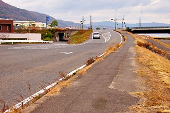 左岸の河川敷を南下し、芦田川大橋下を潜りますと、スグ先で河川敷は行き止まりです。