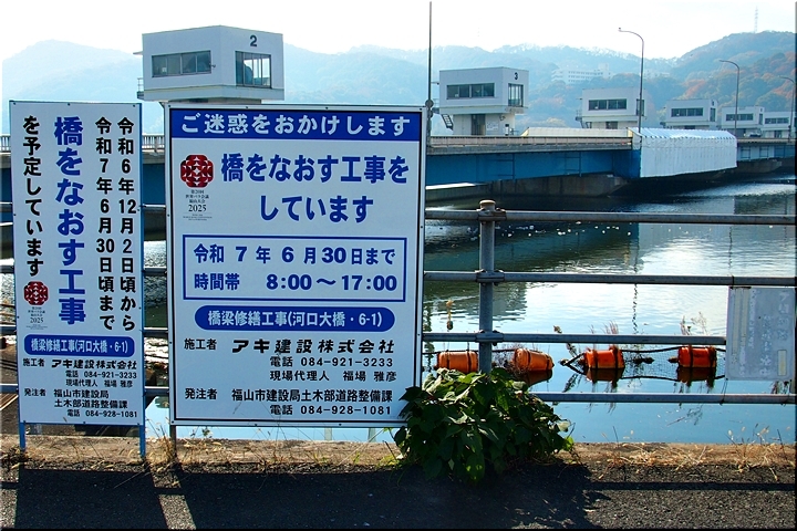 年が明けますと、ふくやまマラソン≠ノ備えて河川敷をジョギングされます方々が多くなりますネ。ですが、右岸の河川敷の一部が使用出来ませんのがお気の毒かも…工事期間は、2024/10/21〜2025/06/15間と結構長いですから(^-^)