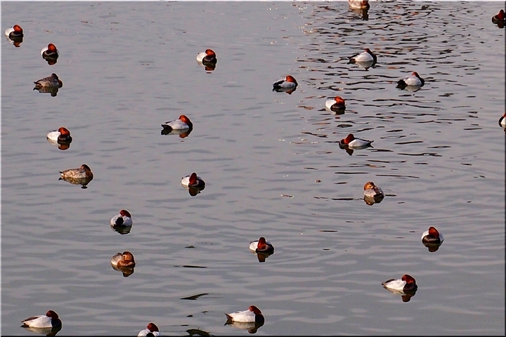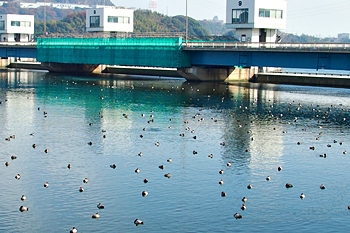 河口堰を渡りながら川面を見下ろしますと、右岸側には多数のカモsan達が(^-^)