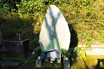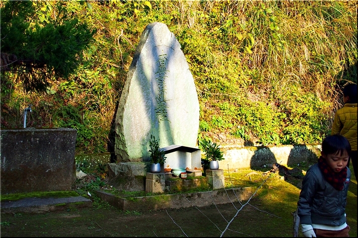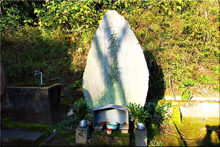 倒れます方向によっては危ないかも…との危惧も不要で、うまいこと石碑を避けて左側に…
