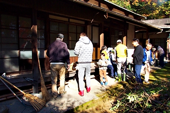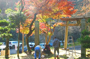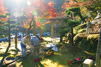 12/1(日)は、冬至祭≠煖゚付いて来ましたので、A.M.9:00から葛城神社境内清掃≠ナありました。