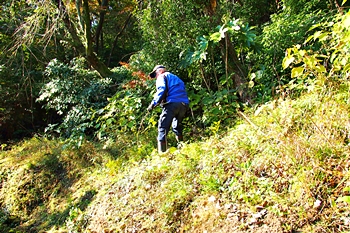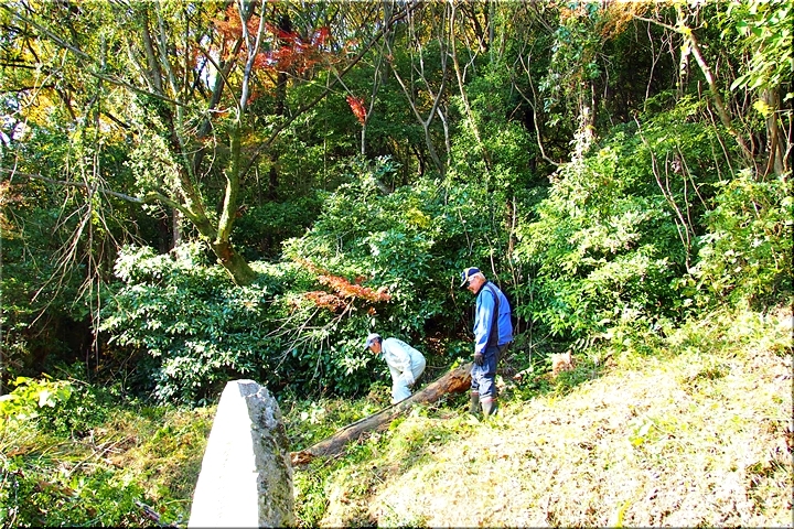 1時間ばかり黙々と作業を続け、一段落付きました段階で斜面上に眼を向けますと、お二人が何やら考慮中。