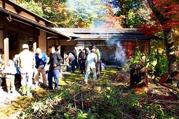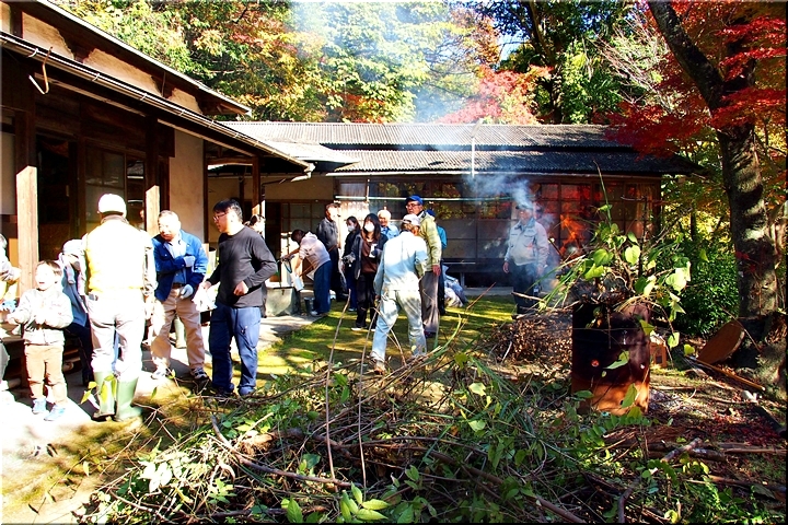 斜面の刈り取りも一段落で、今から、刈り取られました木々・雑草を集めますのが一苦労。とりあえず焼却します為に、ドラム缶近くまで運ばなくては…と思っていましたところで、休憩≠フ声。
