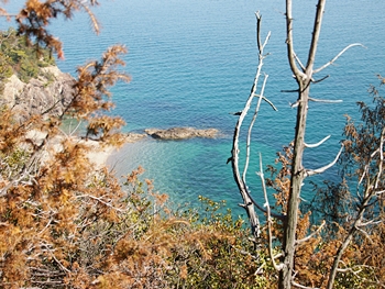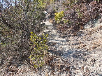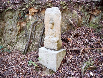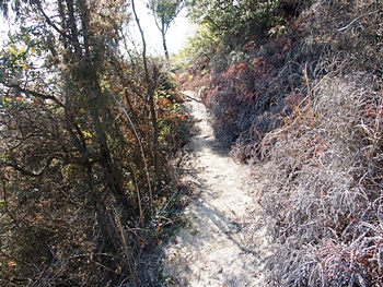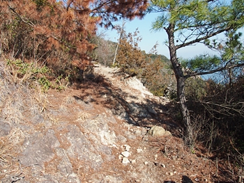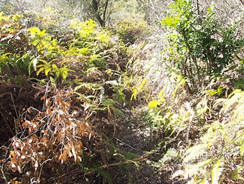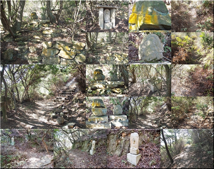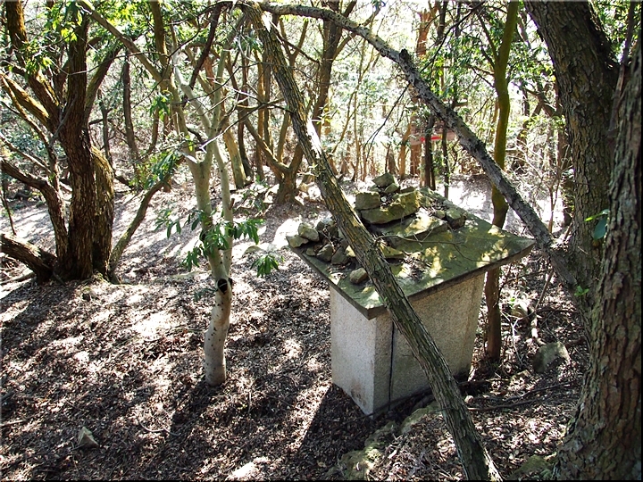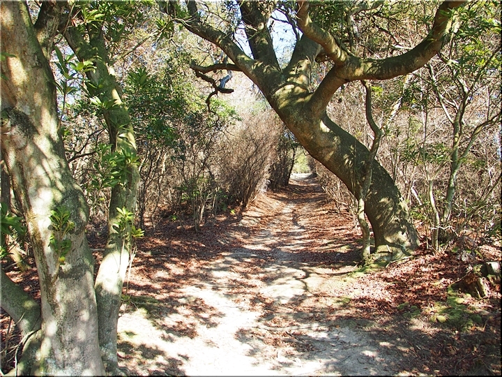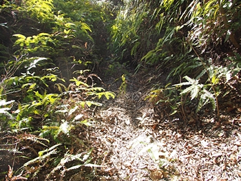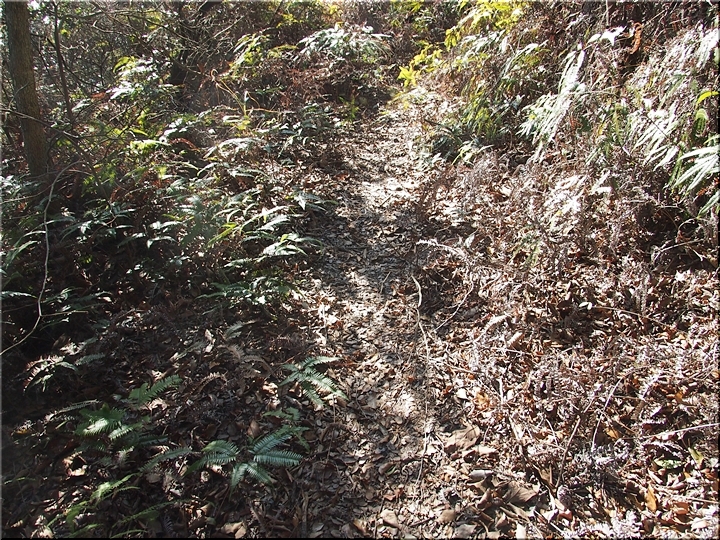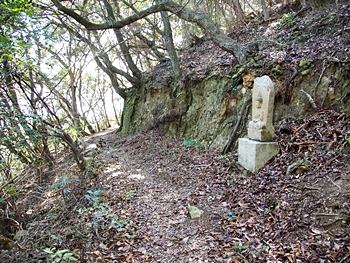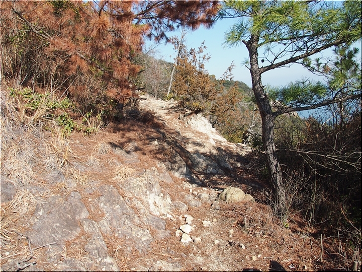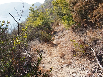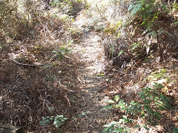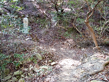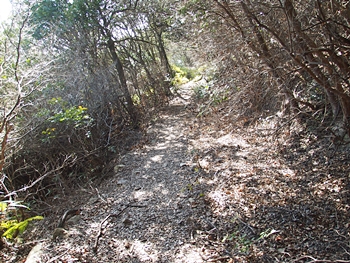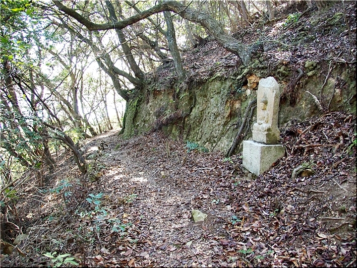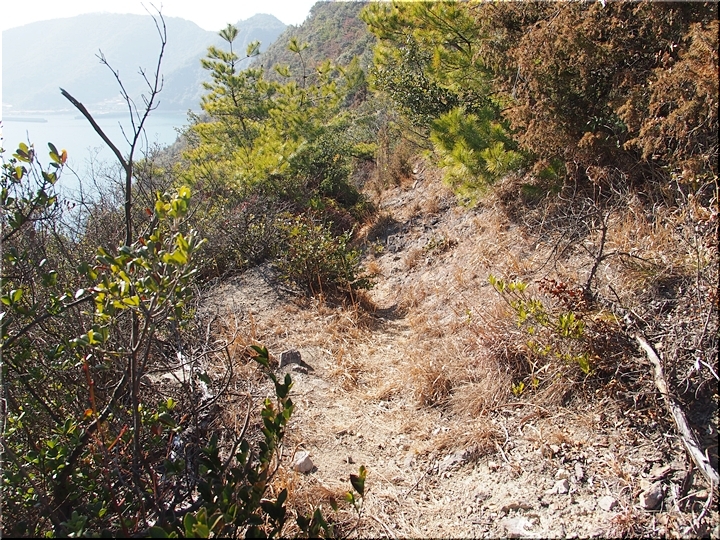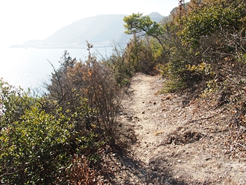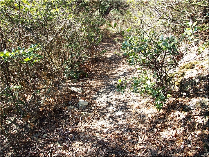 〝えっ、道が無い(^-^;〟との戸惑いで、左右前方を確認してみますのですけど、う~ん、やっぱり分かりません。道標で「直進→阿伏兎観音」でしたから、遊歩道は有るハズなんですけど、哀しいかな分かりません。