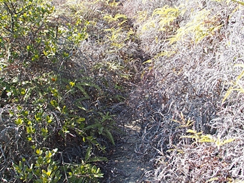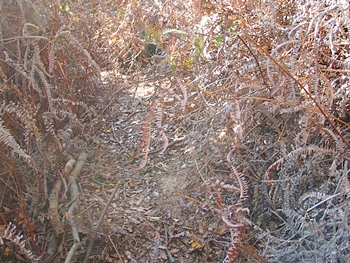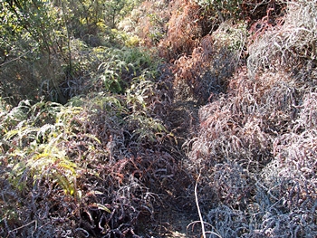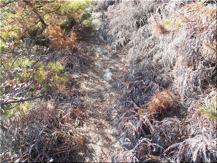 ふん、ふん、最近、どなたかが、このルートで歩いておられますようですネ。と、言う事は、このブッシュの中を進んで行けばイィようであります。