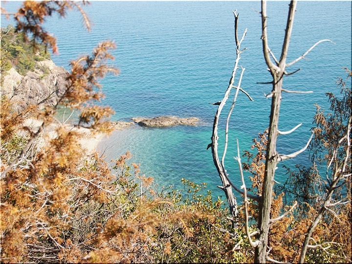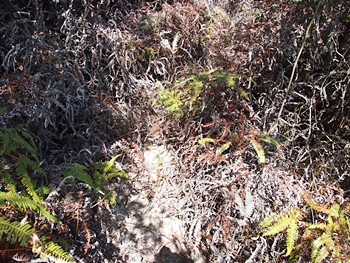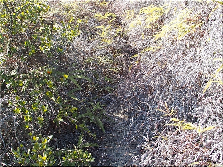 歩き易い遊歩道らしい箇所も有れば、またブッシュの中を(^-^;こんな繰り返しで進んでおりますと、眺望の良さそうな場所にと出て来ました。