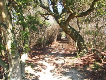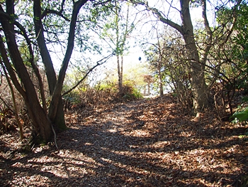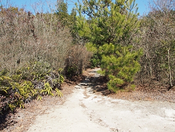 暫く進んで行きますとブッシュも終わり、遊歩道らしい道に。そして、前方に眼を向けますと、開けた場所にと出ますようです。