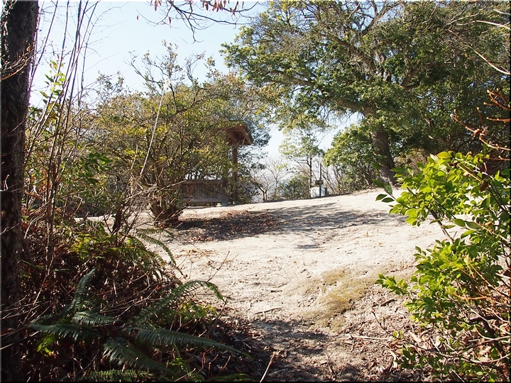 阿伏兎観音に向かいます海岸沿いの〝みかど別館〟付近の〝遊歩道西口〟から上がり、〝阿伏兎灯台〟入口辺りを横目に上がって来ますと、この東屋に到着ですけど、何年か前に訪れました時には、雑草が生い茂っておりました広場でしたのに、今回はキレイに整備されておりました(^.-)☆