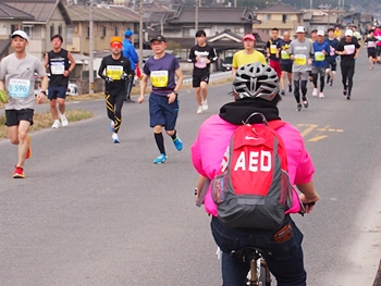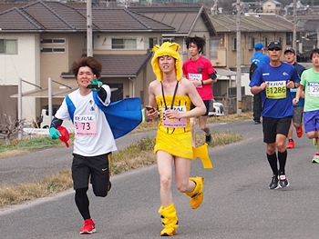 こぅして、次から次にGONsanの前を通過して行かれます選手の皆様を画像に納めておりましたら、スマホを片手に走っておられます方が…
