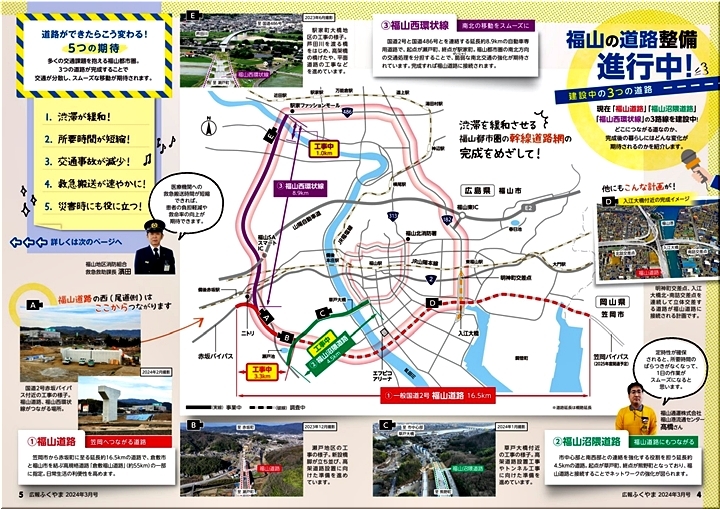 市の広報誌『広報ふくやま<3月号>』に、福山の道路整備が進行中との記事掲載が(^.-)☆