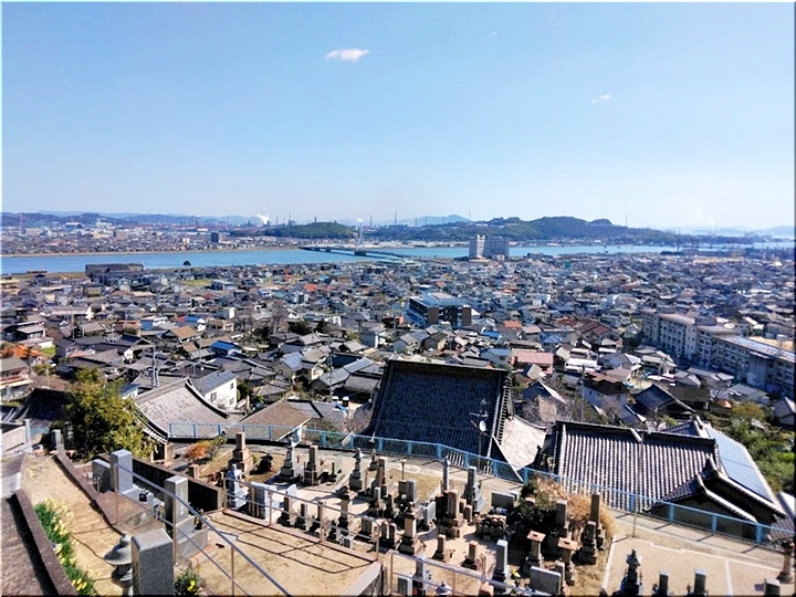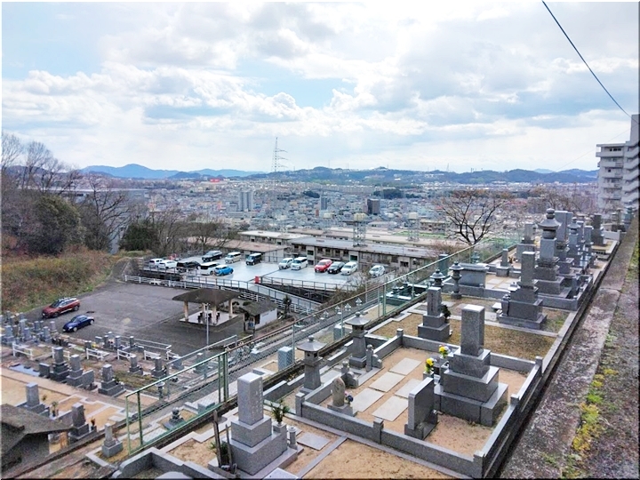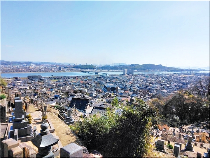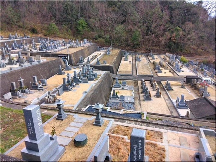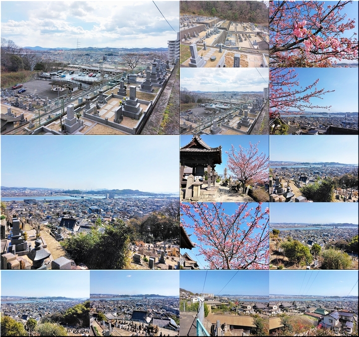 終わりますと、サッサと退散…と思いましたけど、久し振りに上側の駐車場に上がり、墓地からの眺望をパチリです。