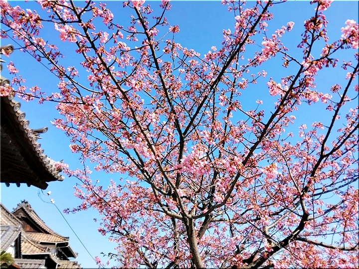3月上旬ですから未だ満開ではありませんけど、鐘楼脇の河津桜がキレイでした。